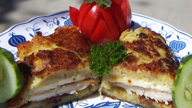 Křupavý a šťavnatý bramborák se díky kuřecímu masu a rozpuštěnému sýru promění v lahodný pokrm, který si zamilujete na první kousnutí. Je to rychlé a syté jídlo s bohatou chutí, která nadchne vaše smysly.