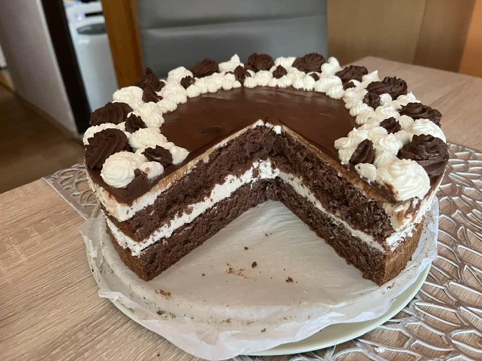 Ingredience: Na krém: ½ litru mléka 2 plechovky slazeného kondenzovaného mléka 1 krabice mléčné smetany 200 ml tuhé šlehačky 10 lžic sušeného mléka 3 lžíce kukuřičného škrobu 1 lžíce másla ganache: 1 krabice mléčné smetany 200 g jemně nasekané hořké čokolády Pro montáž: Oříškový krém dle vaší chuti Čokoládové granule dle vaší chuti. příprava: