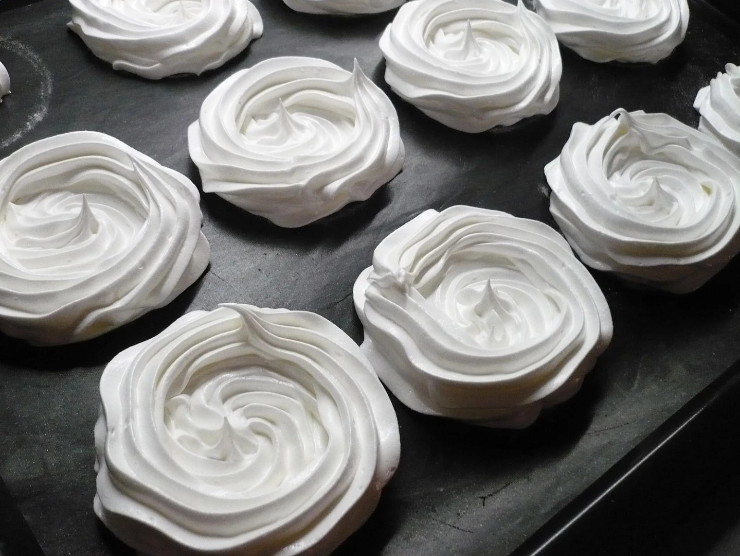 Ingredience: 6 bílků Špetka soli 350 g krystalového cukru 3 lžíce kukuřičného škrobu 2 lžičky bílého vinného octu nebo citronové šťávy Příprava: