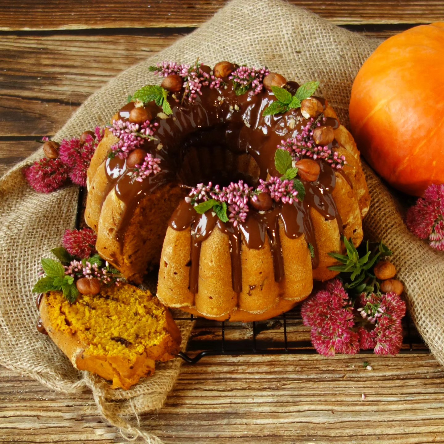 Zpříjemněte si víkend touhle skvělou voňavou bábovkou. Dýně dodá bábovce krásnou barvu, skvělou chuť a vláčnost. Spojení s čokoládou a ořechy tvoří neodolatelnou dobrotu.