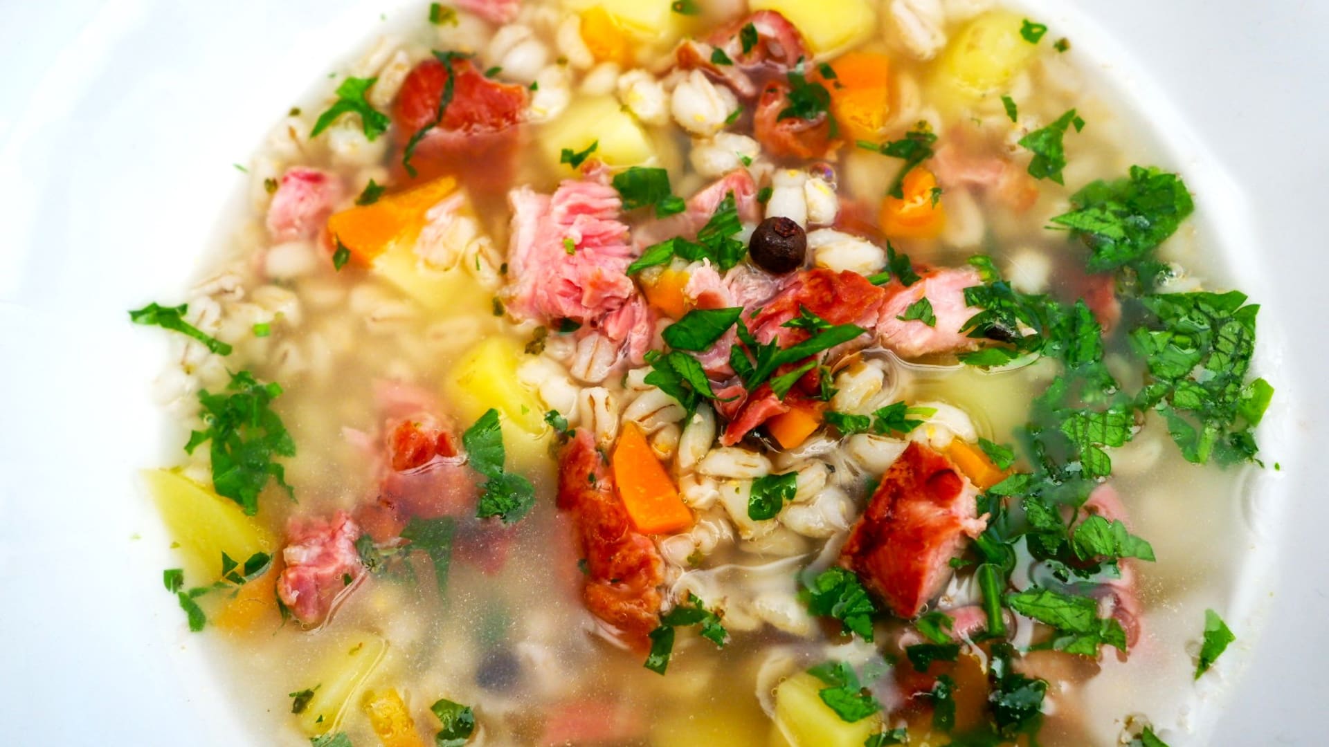 Výrazný uzený vývar je skvělý jako základ pro tuhle výtečnou a sytou polévku s kroupami, která se skvěle hodí jako vyprošťovák po dlouhé noci. Nebo si ji připravte na horách – po lyžovačce báječně zahřeje a dodá energii.