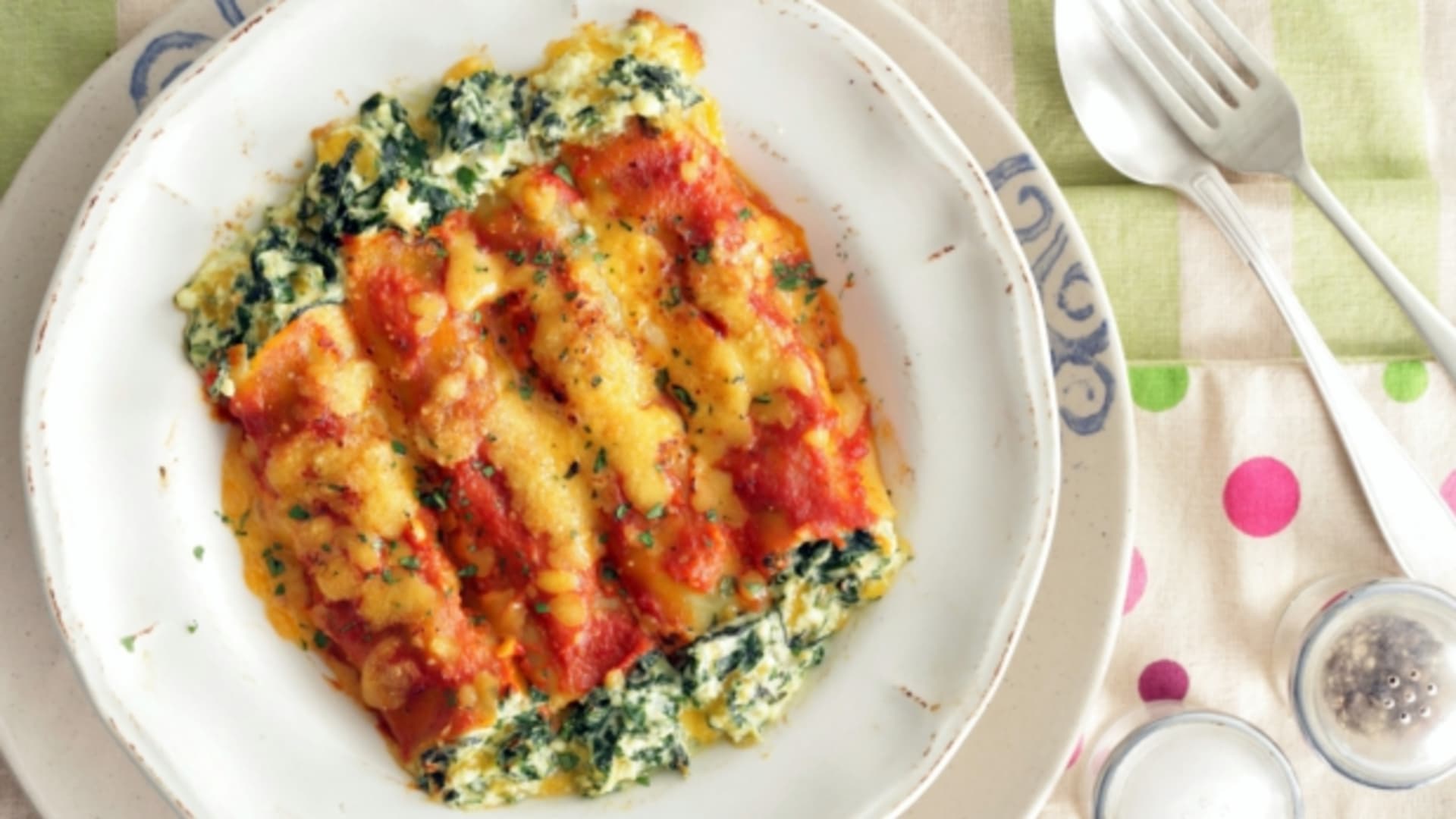 Cannelloni jsou tradiční italské duté válečky u nudlového těsta, které se plní a nejčastěji zapékají. V tomto případě jsme zvolili špenát, riccotu a bylinky.
