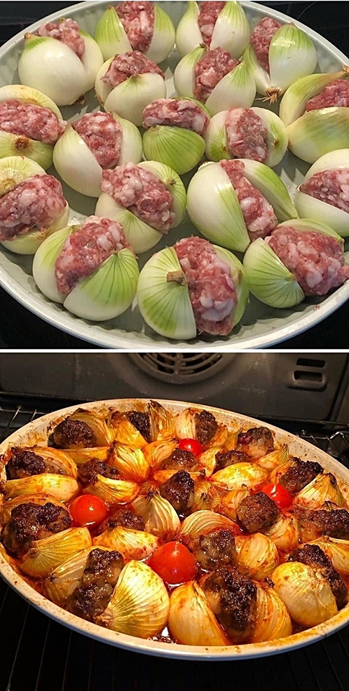 Tento recept je důkazem, že i z obyčejných surovin můžete vykouzlit naprosto neobyčejné jídlo. Mletá směs uzavřená v cibuli se během pečení krásně spojí, cibule změkne a karamelizuje, zatímco maso získá plnou chuť díky pomalému pečení. A navíc? Je to velmi efektní a netradiční podání!