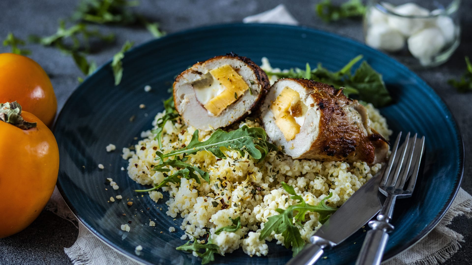 Plněný kuřecí závitek nabízí lahodnou náplň z kaki, která zjemňuje kuřecí maso a dodává mu nečekanou sladkost a šťavnatost. Nechybí ani kousek sýra, díky kterému jídlo trochu připomíná proslulé kuře s broskví a plátkem eidamu, v tomto případě jde přece jen o dost sofistikovanější verzi.