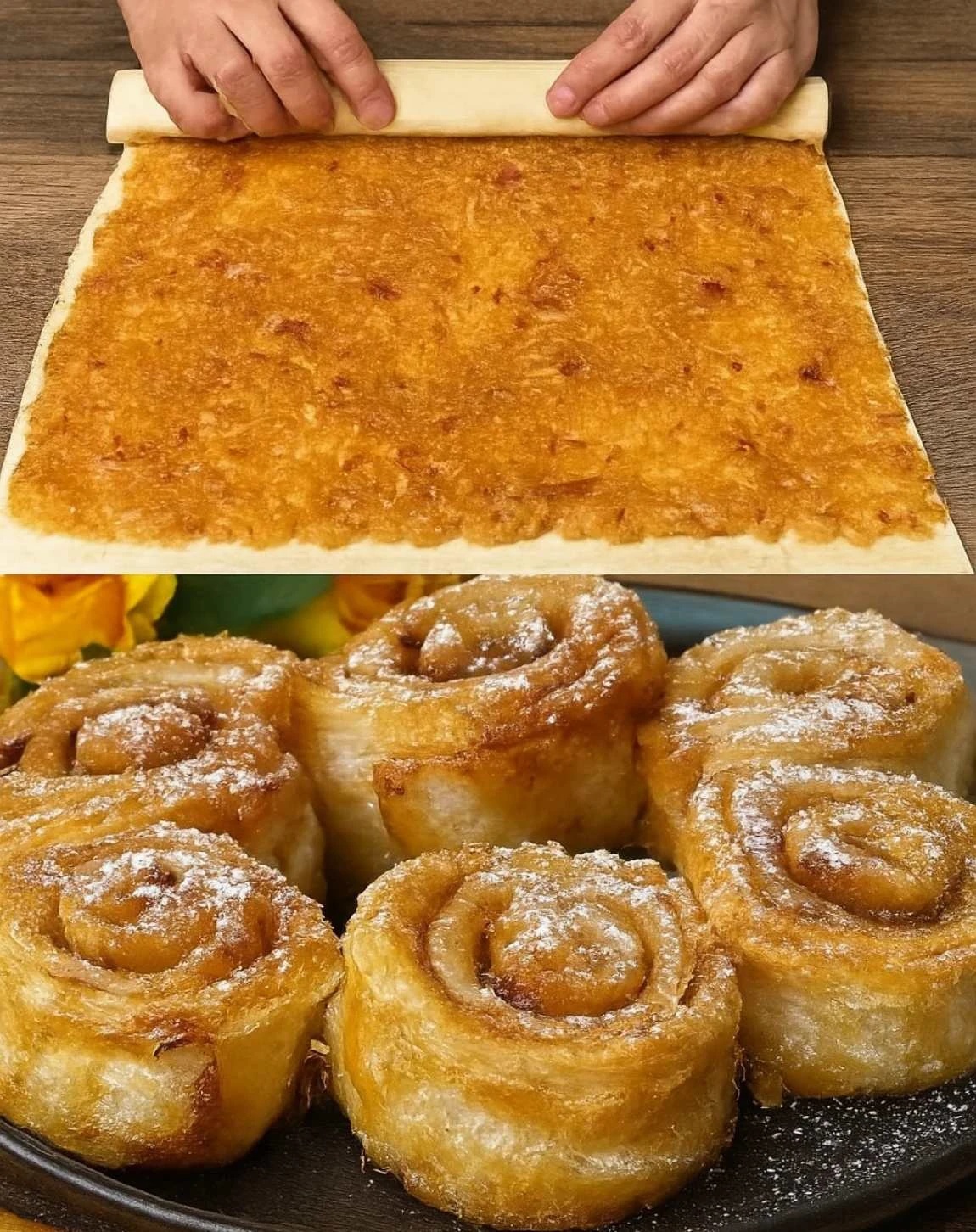 Tento jablečný dezert z listového těsta je dokonalým důkazem toho, že jednoduché je nejlepší. Kombinace listového těsta, šťavnatých jablek a voňavé skořice vytváří chuť připomínající dětství a babiččino pečení. Pokud chcete recept změnit, přidejte do náplně hrst ořechů, rozinek nebo trochu vanilkového cukru. Výsledek? Voňavé, vonné a dokonale zlatavě hnědé bochánky, které zmizí z plechu dříve, než vychladnou.