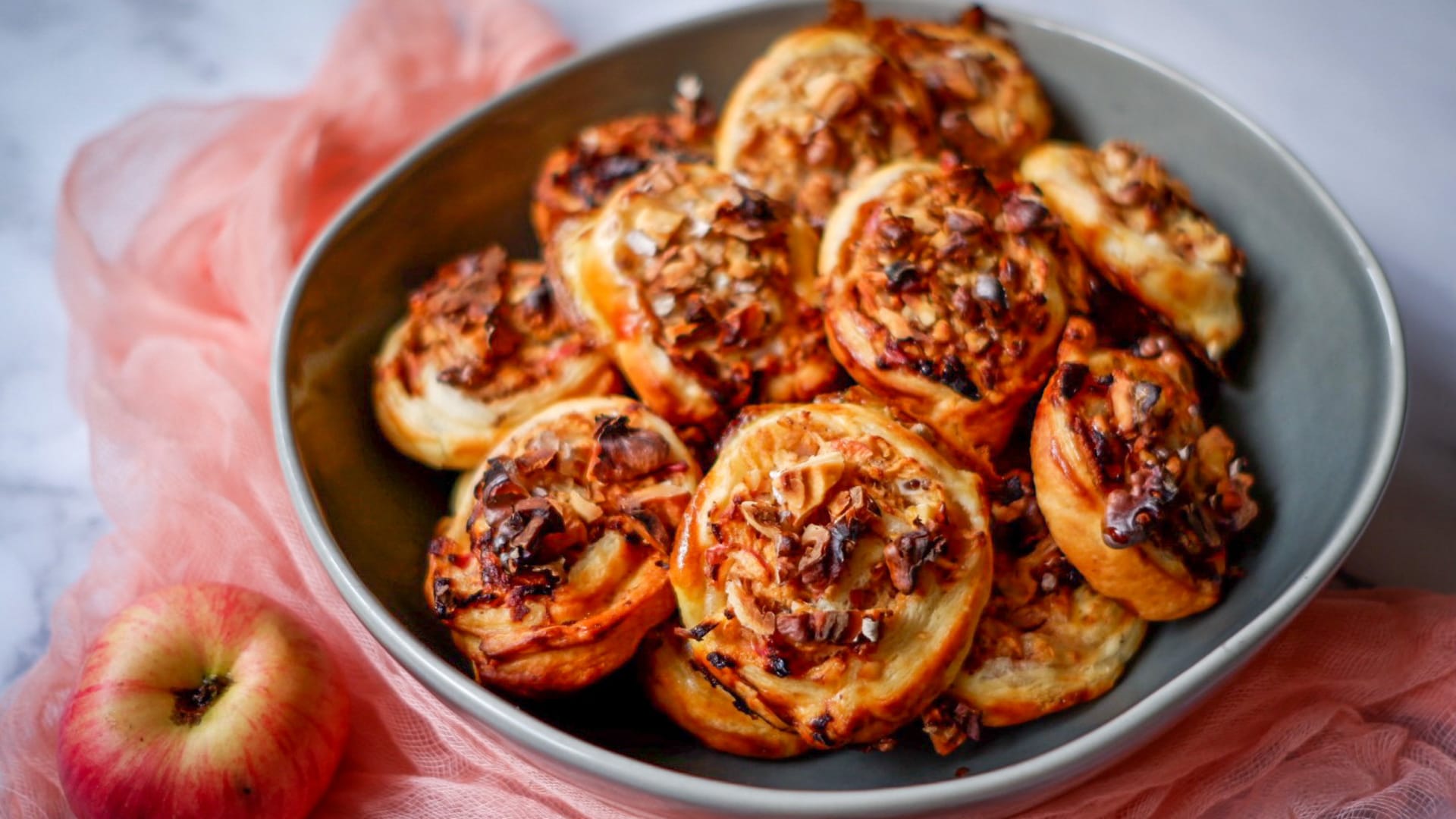 Štrúdl šneci z listového těsta s jablečnou náplní se skořicí