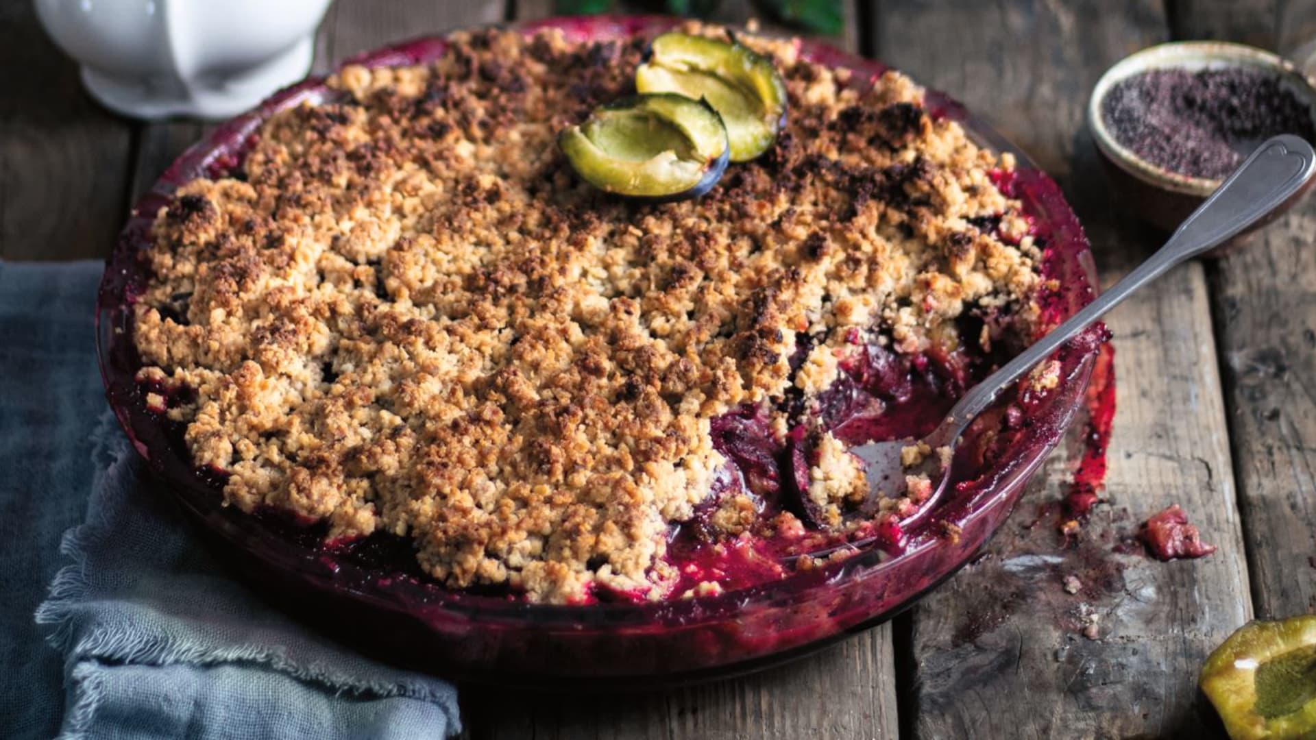 Švestkovo makový crumble s křupavou mandlovou drobenkou