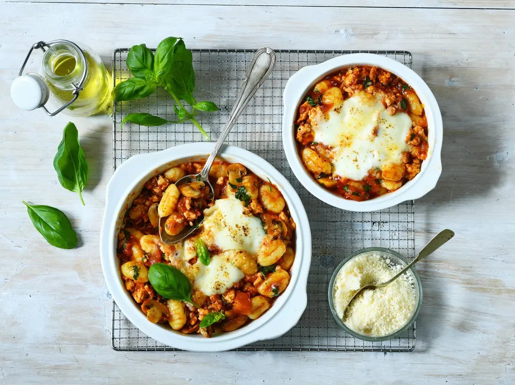 Chcete vědět, jak zařídit, aby kuřecí maso nebylo suché jako týden starý rohlík? Jednoduše: umelte ho, přidejte omáčku à la bolognese, zapečte s gnocchi a zasypejte pořádnou dávkou sýra.